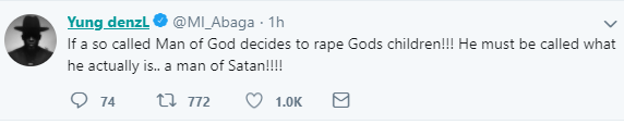 Reacting to the interview, MI tweeted: “If a so called Man of God decides to rape Gods children!!! He must be called what he actually is.. a man of Satan!!!!”