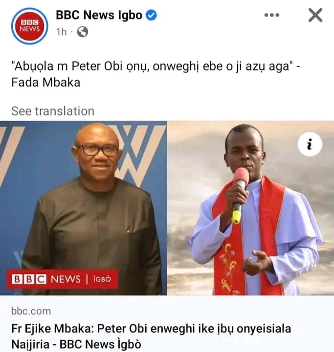 According to them, they reported that Fr Mbaka has made it clear that Peter Obi Will never win Presidency in Nigeria.
