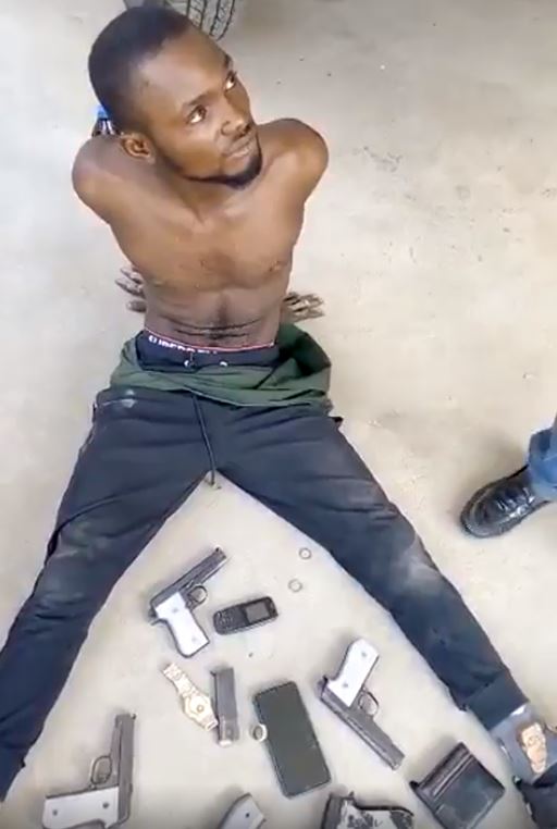 WonderTv media learnt that the suspect was traveling to Abuja from Benin in a Toyota Tacoma when he was intercepted by the police. The police officers found five pistols and magazines fully loaded with live ammunitions on him.