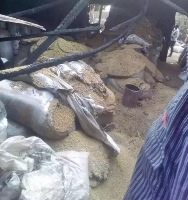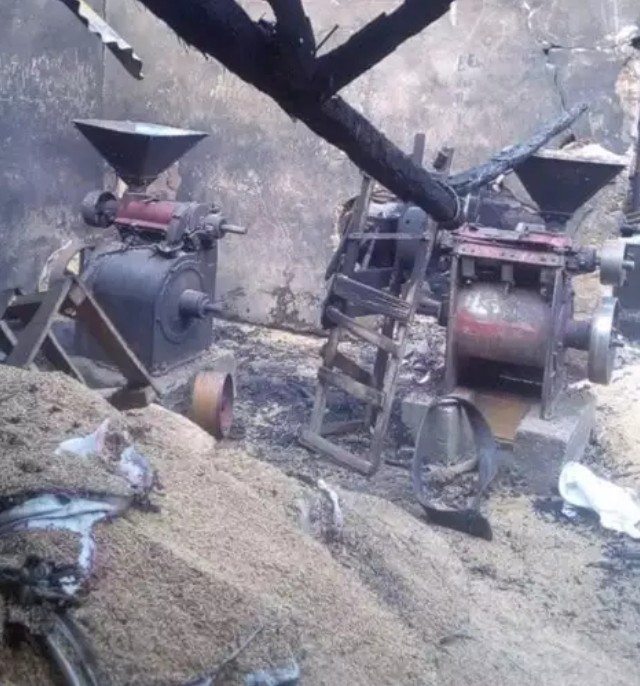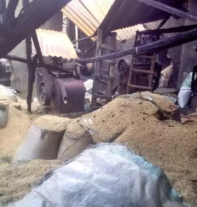 “When I visited the scene, I saw about 5-black stone Rice Milling machines, bags of par boiled rice and the whole roof and interior of the building completely razed.”
