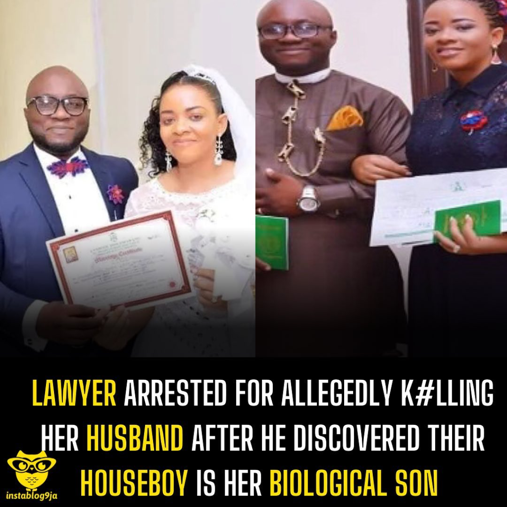 A lawyer has been arrested for allegedly killing her husband after he discovered their houseboy was her biological son.