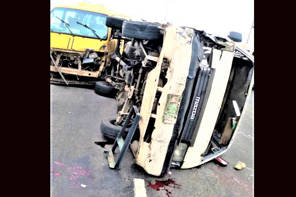 The accident involved a fully-loaded Mazda bus with registration number LSR 890XF and a Yellow Toyota bus with registration number LND 517XP.