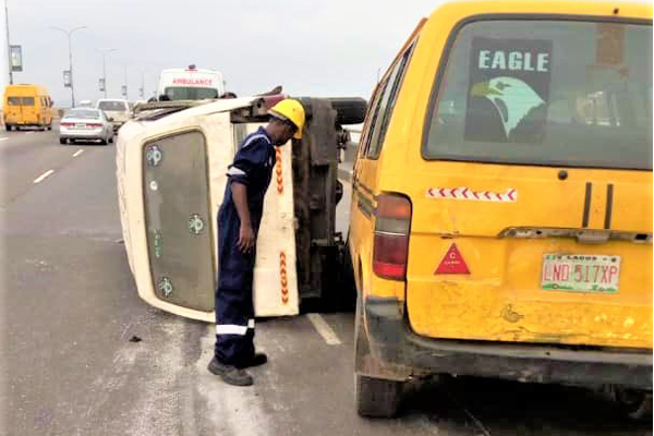 Earlier today, an auto-accident occurred on the Third-Mainland bridge, inward Lagos Island, Lagos.