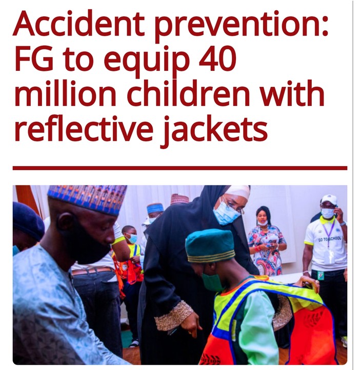 “As enshrined in the memorandum of understanding, the programme encompasses a phased kitting of schoolchildren within the ages of four to 14 years in selected schools at the federal and state levels, with customised reflective jackets and armbands free of charge.”