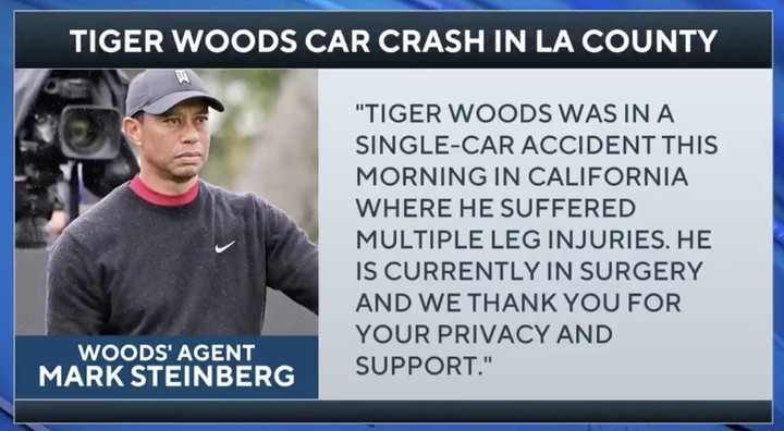 A KABC-TV helicopter over the scene of Woods’ accident showed a car on its side with the front end heavily damaged. Air bags appeared to be deployed. The wreckage appeared to be just off the side of a road on a hillside.