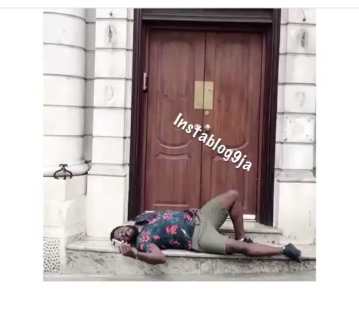 Nollywood Actor Aremu Afolayan was spotted sleeping on the floor in front of the Nigeria High Commission London.