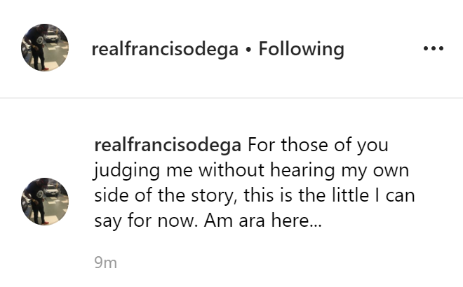 Francis has now taken to Instagram this morning to share videos of himself reacting to the accusations.
