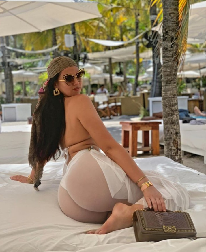 Sonia Morales, wife of IK Ogbonna flaunt her massive behind while relaxing at Miami Beach, Florida.