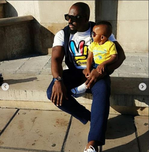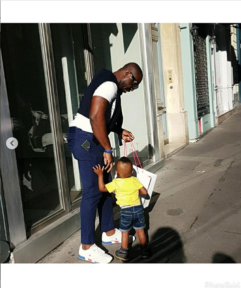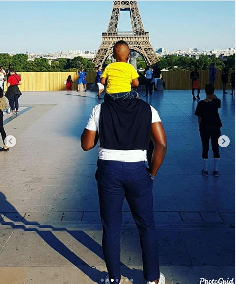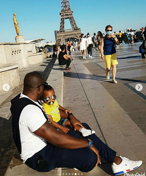 Nollywood actor, Jim Ijke, who is currently in France took his young son Harvis Chidubem Ikechukwu on a visit to the famous Eiffel Tower in Paris.