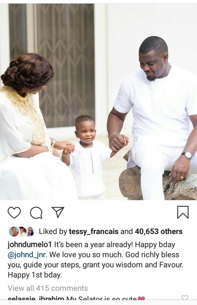 Taking to Instagram to share adorable photos of their son, John Dumelo wrote in one of his posts: ‘It’s been a year already! Happy bday @johnd_jnr. We love you so much. God richly bless you, guide your steps, grant you wisdom and Favour. Happy 1st bday.’