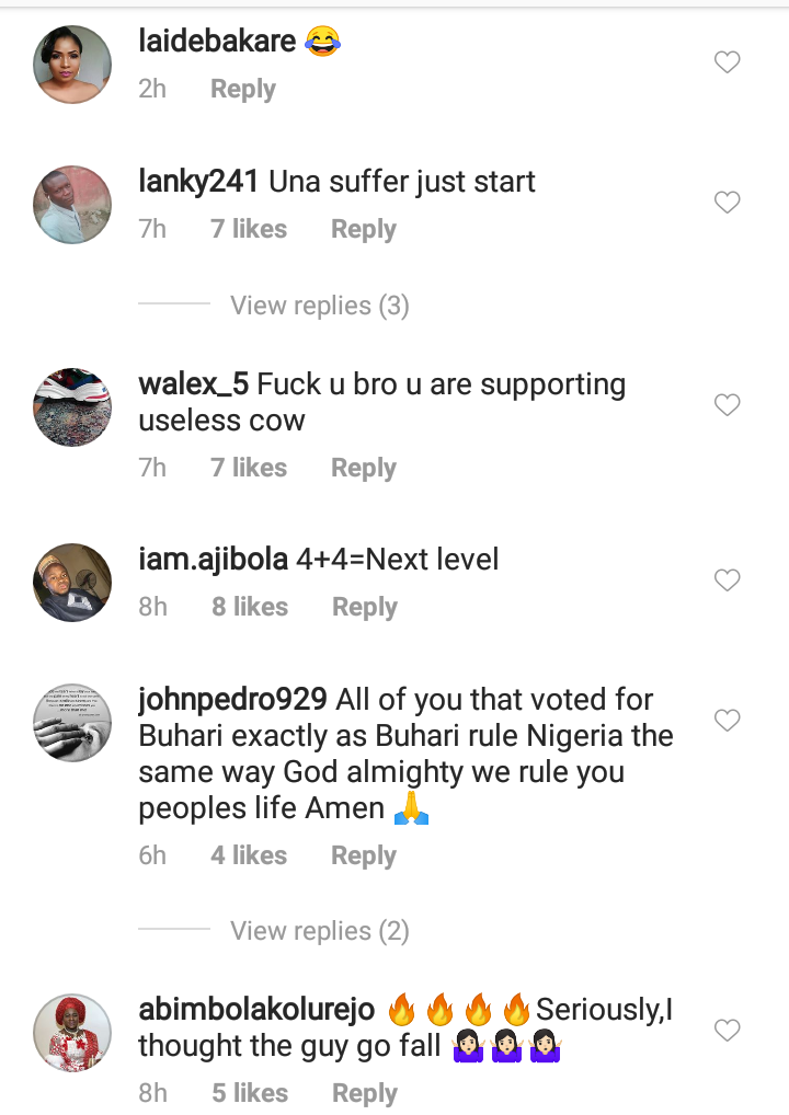 Meanhwile some non fan comes for him and some even curse him for voting for President Buhari.