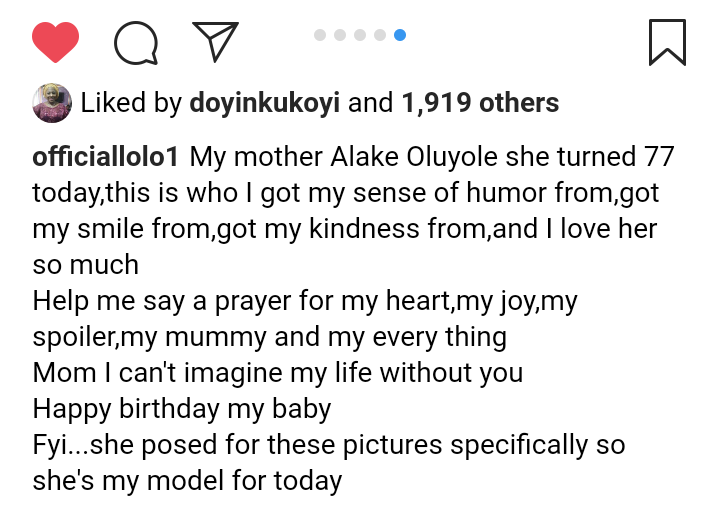 Actress Omotunde Adebowale-David popularly known as Adaku of ‘Jenifa’s Diary’ celebrates her mum as she turns 77th today, May 29th.