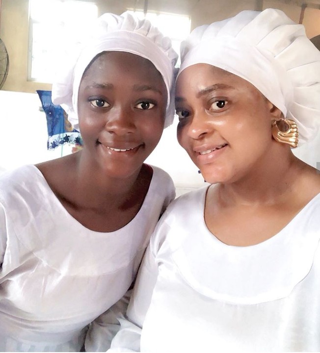 Yoruba actress, Biodun Okeowo and her beautiful daughter poses together.