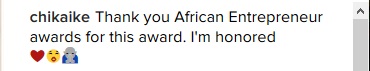 The Lebanese designer, Amal Azhari, who made the actress’ dress is reportedly known for her caftans and tunics, and Chika sure made a bold a statement, and this has to be one of her best looks yet.