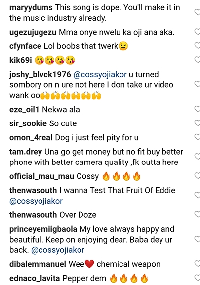 “The other night…. Picked up my #faya#music #video and went out to celebrate. But… I really don’t know the music business…. Any ideas .. Yes am Johnny just come… Help out… Wondering what challenge to throw and how much to give .. .. Ohhh Cossy Ojiakor is the actor and Cossy Barbie is the musician.”