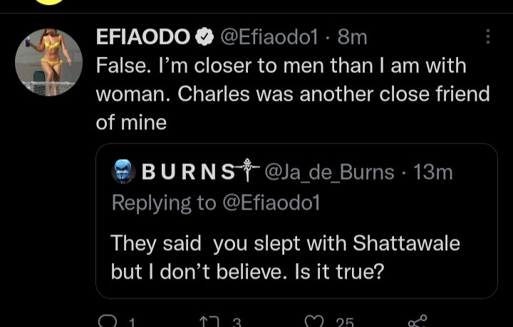 Efia in a question and session with her fans on Twitter, said she was only very close with Shatta Wale.