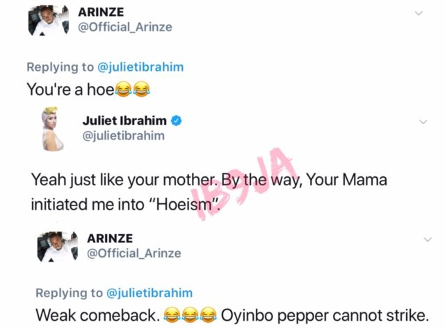 Ghanaian Nollywood actress, Juliet Ibrahim has the audacious guy with the social media handle @Official_Arinze singled her out and called her a ‘Hoe’ for reasons best known to him, well the beautiful thespian did not waste time in giving him the response he asked for.