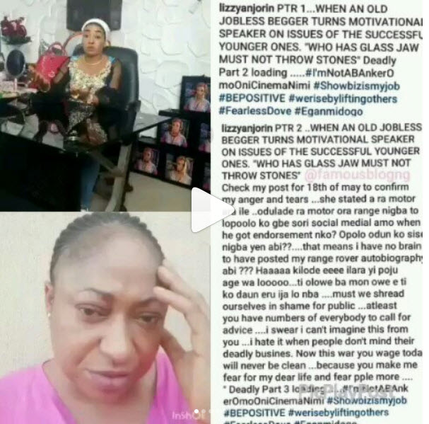 Though Ronke didn’t mention names when she made her video, Lizz Anjorin took it upon herself to reply her describing her as ‘evil, wicked and an old jobless begger’.