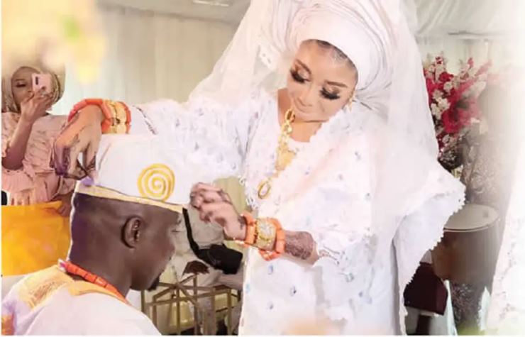 The blogger wrote: Nigeria Actress Lizzy Anjorin New husband abandoned 5 wives and children to marry Lizzy.