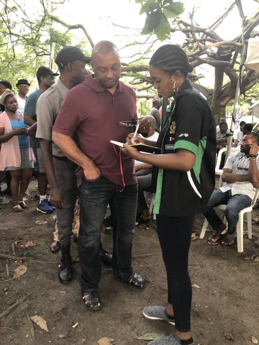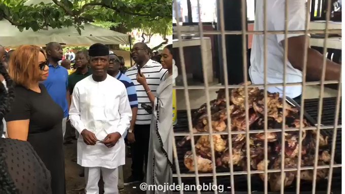 Professor Osinbajo patiently waiting to cast his vote as actress Omoni Oboli helps with crowd coordination at VGC polling unit.