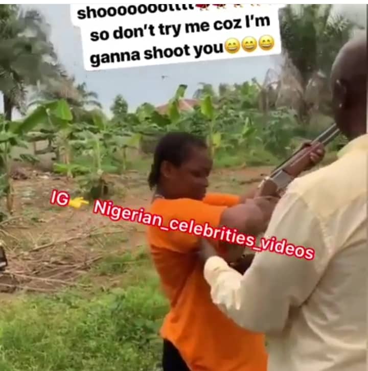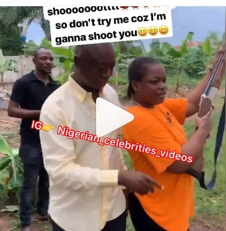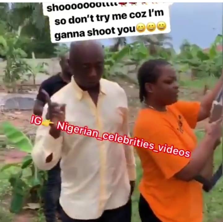 Ned Nwoko was seen in the video teaching the lady how to hold the gun and how to fire it.