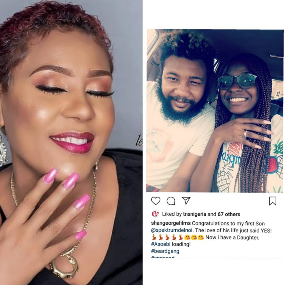 Veteran Nollywood Actress, Shan George First Son as just proposed to his long time girlfriend.