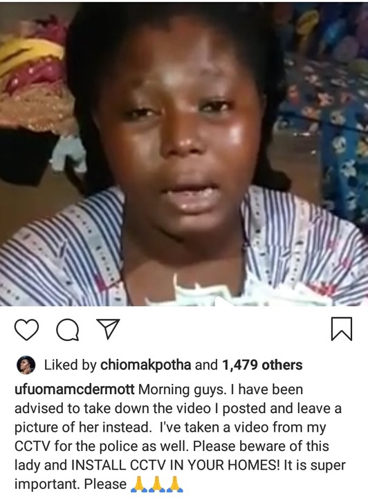 Ufuoma McDermott took to Instagram to narrate how a CCTV footage busted a friend’s nanny who stole foreign currencies in her children’s room.