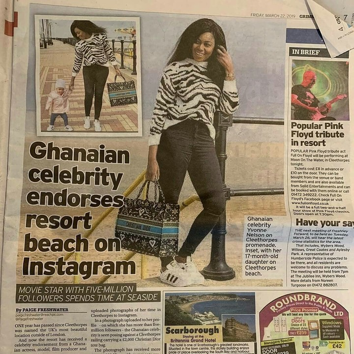 Ghanaian actress, model, and producer, Yvonne Nelson has been featured in a United Kingdom newspaper over her latest photo with her daughter, Ryn Robert.