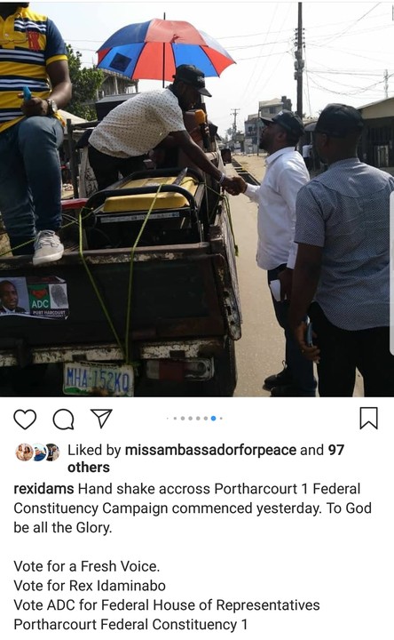 The African Democratic Congress Party Candidate for Portharcourt 1 Federal Constituency in Rivers state, Mr. Rex Idaminabo has commenced the “Handshake” campaign ahead of his 2019 Federal House of Representive election.