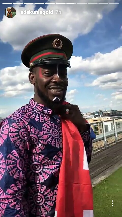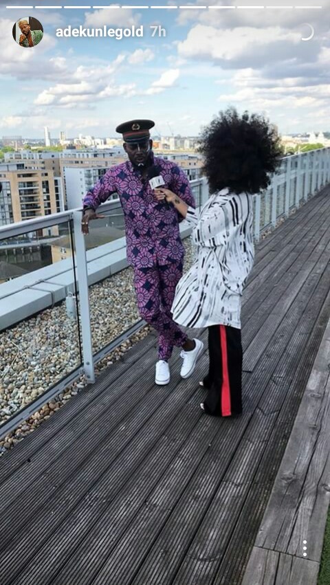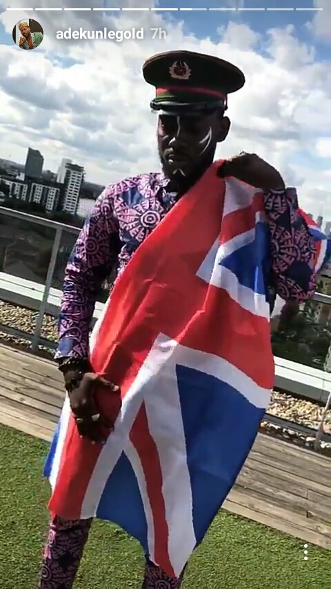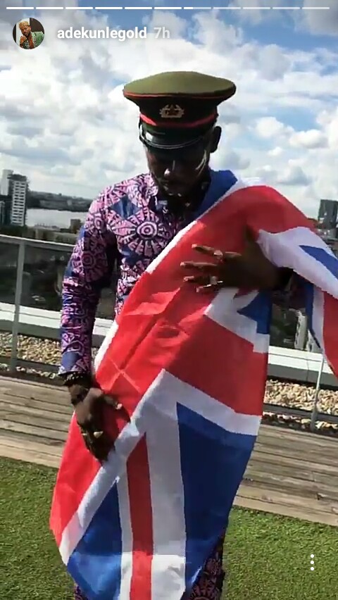 With the cap of a military officer, chalk coloured face, native Ankara fabric, classy all-star and with a British flag, the ‘Orente’ singer looked like a 21st century herbalist on his first visit to the Uk….
