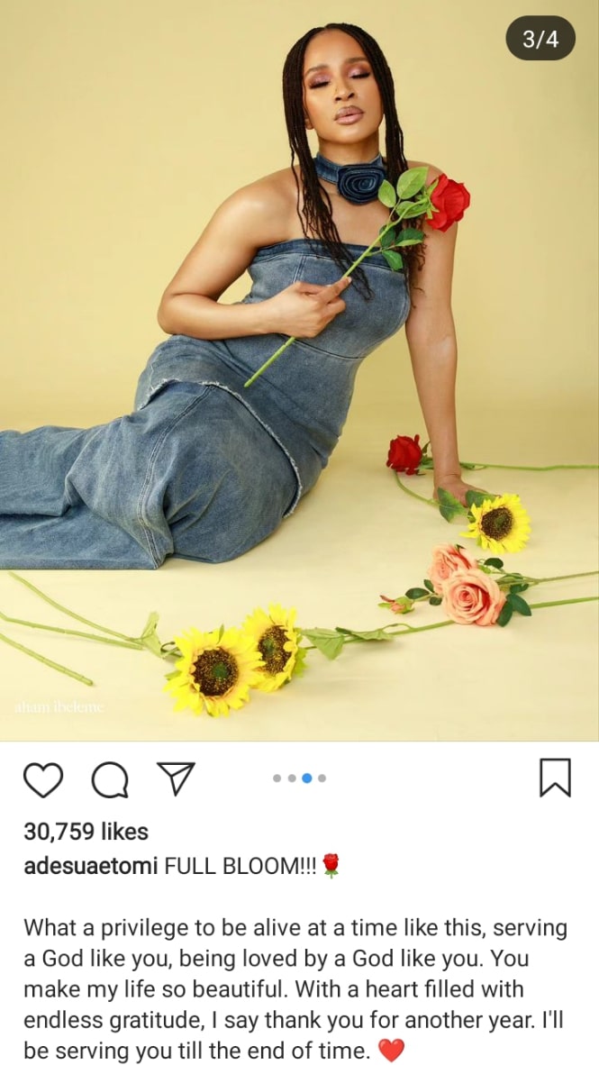 Her words: “FULL BLOOM!!!🌹What a privilege to be alive at a time like this, serving a God like you, being loved by a God like you. You make my life so beautiful. With a heart filled with endless gratitude, I say thank you for another year. I’ll be serving you till the end of time. ❤️ ❤️”