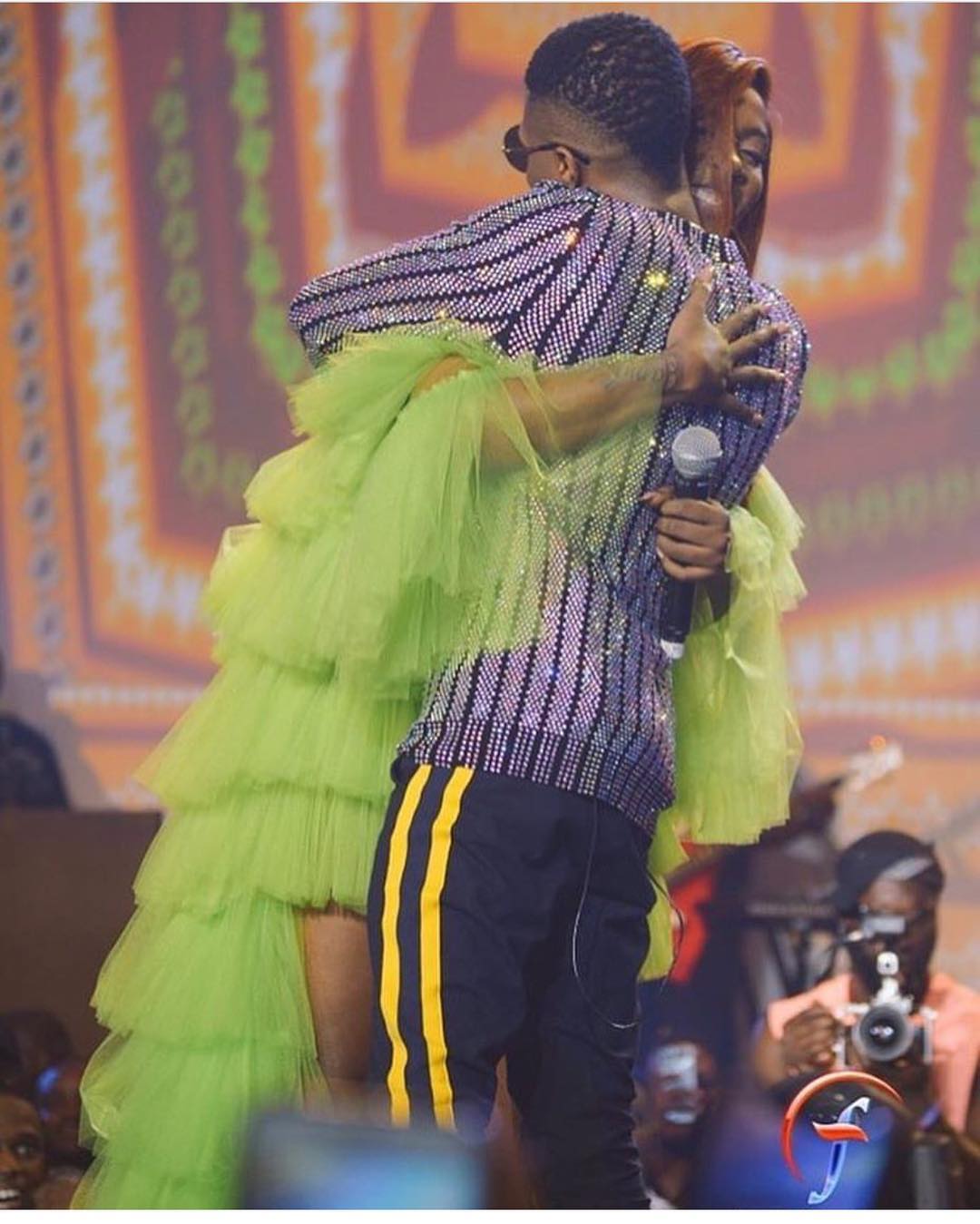 Checkout this adorable photo of wizkid and Tiwa savage is they hug each other tightly in stage.
