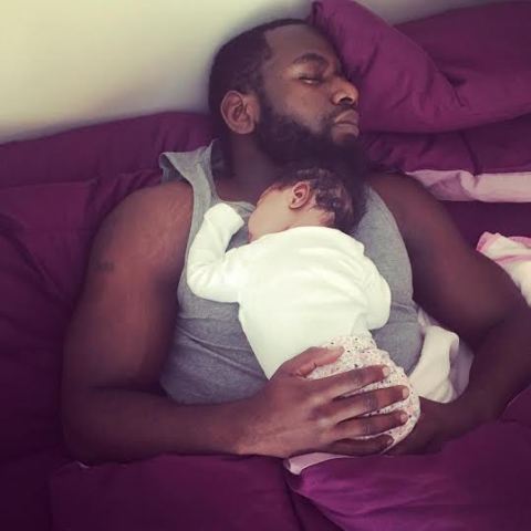 Adorable new snap of Jimmy Odukoya cuddling his newborn daughter