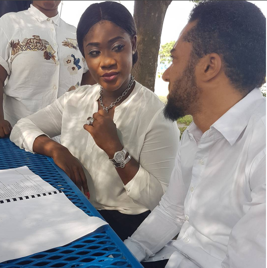 Adorable photo of Mercy Johnson and Majid Michel on set