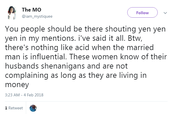 This came after a another Twitter user tweeted; “Husband snatchers…. What do you gain?