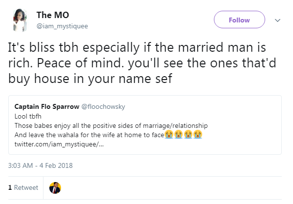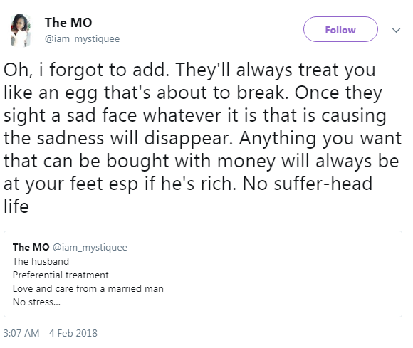 A Twitter user who seems to know a lot about married men has listed advantages of dating them.