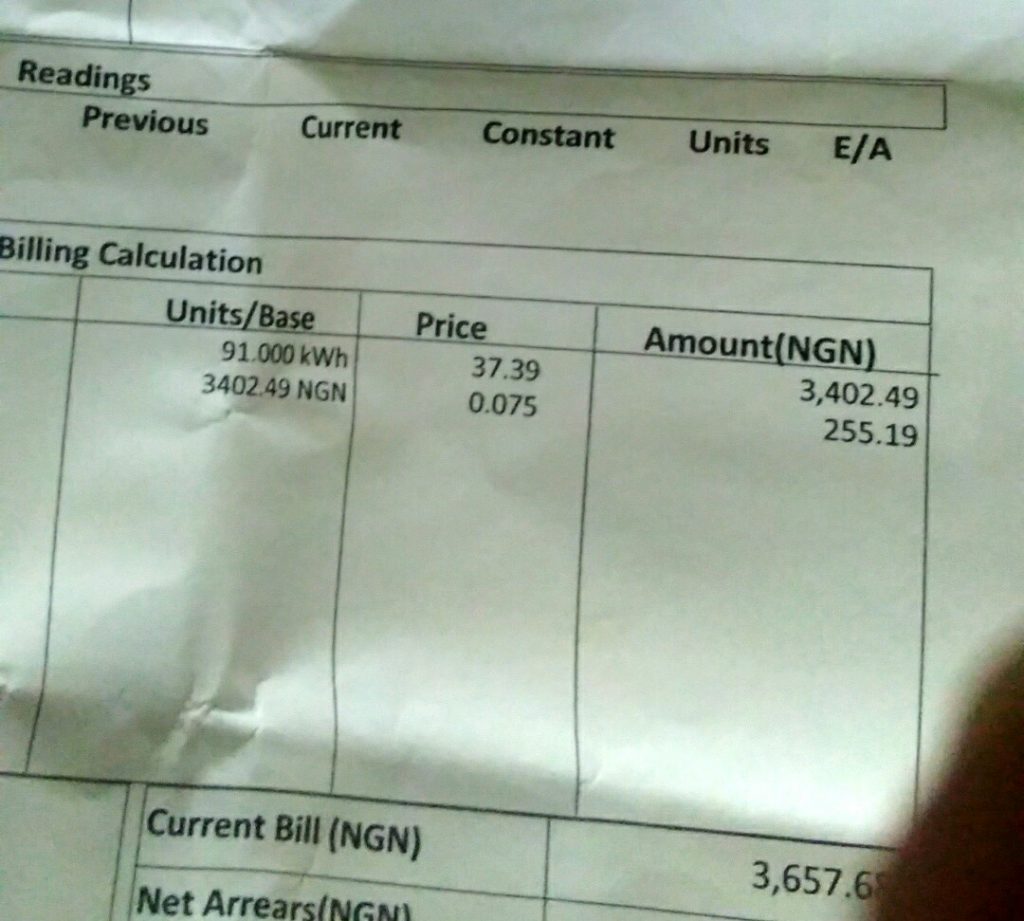 Last month, we were billed nearly ₦17,000,but surprisingly, this morning they brought a bill of just ₦3,656 (VAT inclusive). My neighbor received just ₦1,800 as against ₦8000 they used to receive.