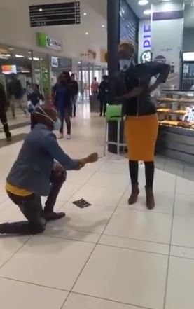 Kabelo Morake decided to surprise her at the Waterfall Mall in Rustenburg, North West by bending the knee to ask her to marry him.