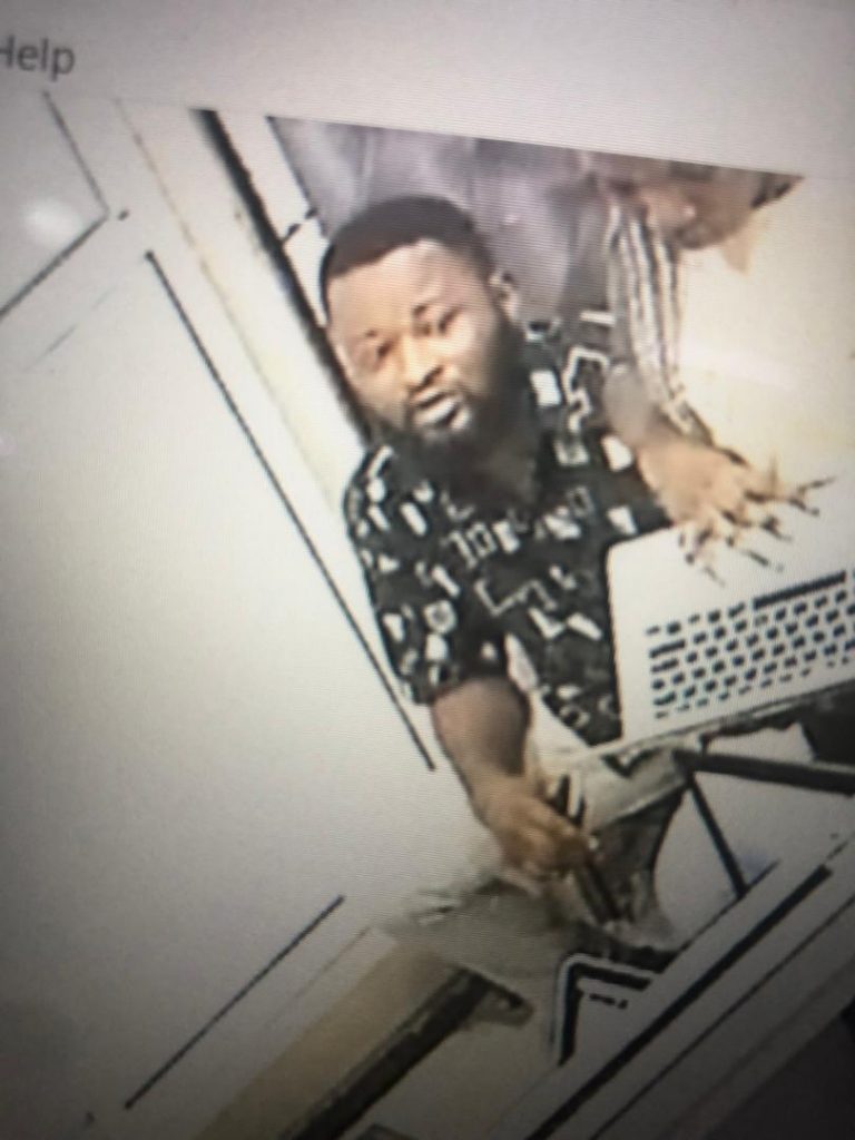“The guy in the picture walked into my store in Computer Village Ikeja and stole three units of Dell Laptop. The incident occured on Monday 7th January at about 11.33am.”