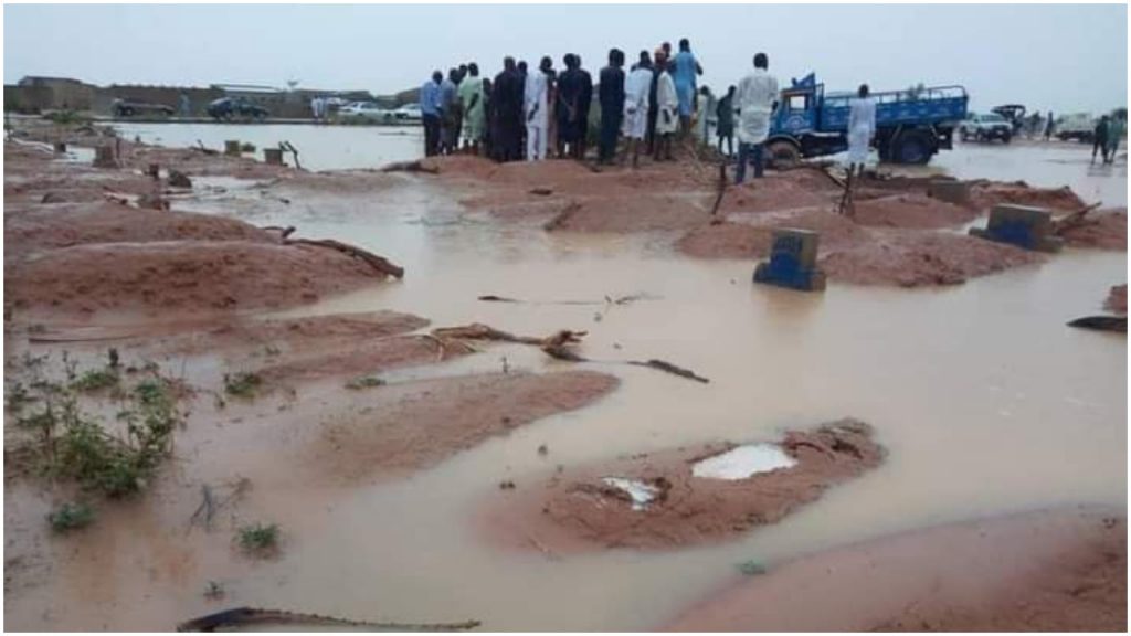 According to a report by Daily Post, flood has submerged a cemetery which resulted in the collapse of many graves in Potiskum town, Yobe State.