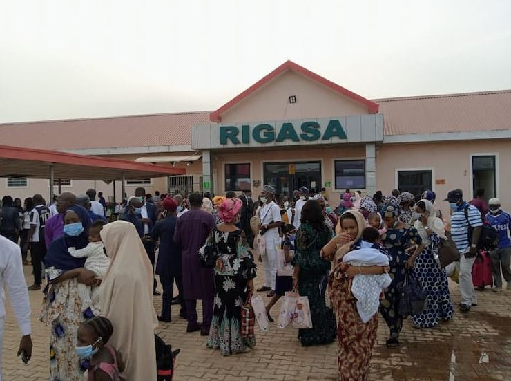 The family members of the passengers who boarded the Abuja-Kaduna train stormed Rigasa train station in Kaduna State early on Tuesday, March 29.