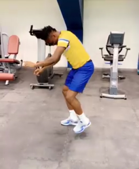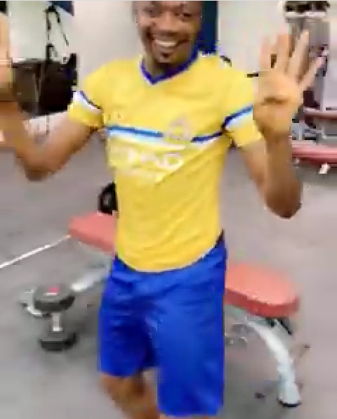 Footballer Ahmed Musa celebrates President Buhari re-election with Amazing dance steps while gym with his Football Club mates in Saudi Arabia.