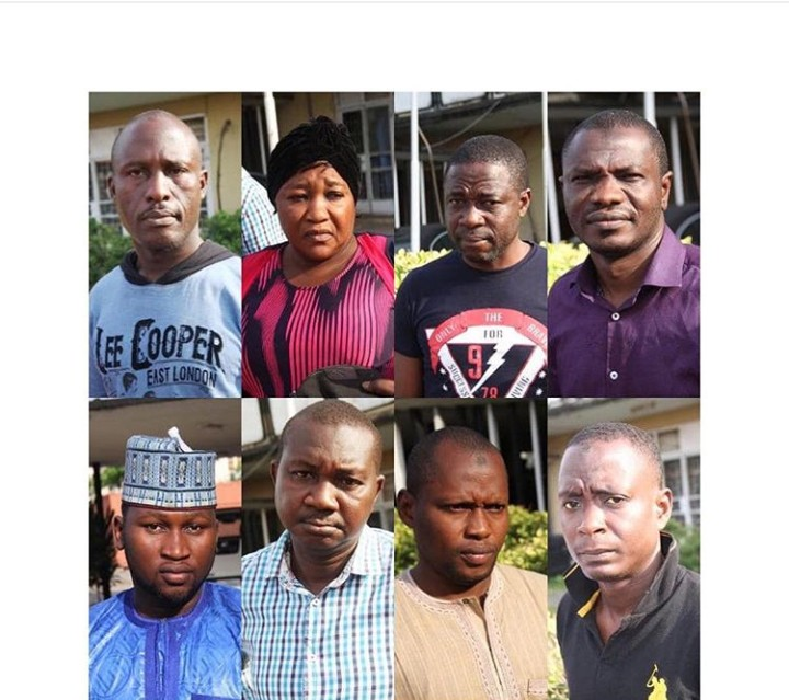 The suspects are: Babagana Zannah, who claimed to be the owner of the raw gold bars; Ahmed Hamza Mannir; Manasseh Auta; Dahiru Habib Bali; Isa Umaru Ammani; Ajakaye Oladipo; Bamanja Jonah Samuel and Lasisi Aisha.