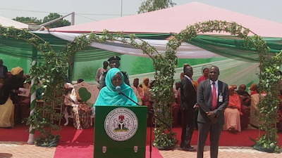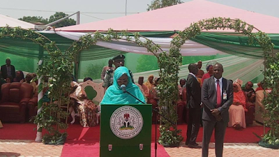 Wife of the President, Mrs Aisha Buhari arrived Kano earlier today for the distribution of food items the people of Kano State.