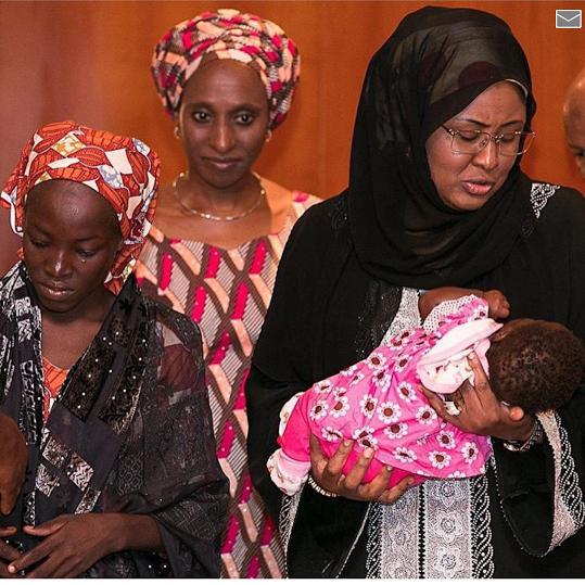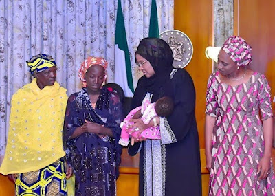 Aisha Buhari meets rescued Chibok Girl – Amina Ali & her baby (See Photos)