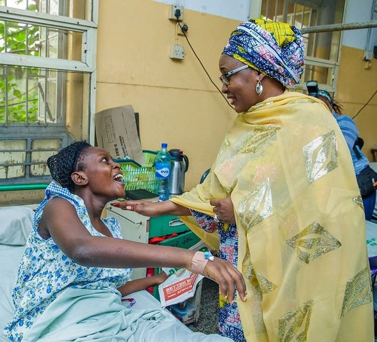 Mrs Buhari was at the General Hospital, Marina to check on the victims.