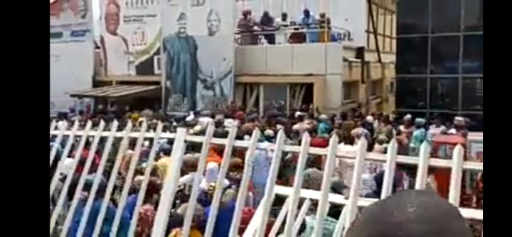 Moment a crowd of people went against the rules of social distancing to get food, at the burial ceremony of Abiola Ajimobi, the Oyo State Ex-Governor.