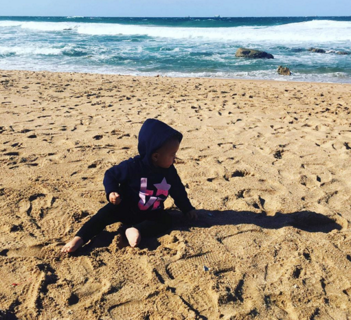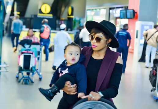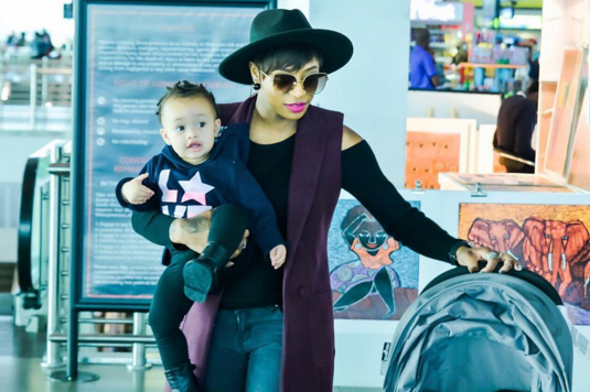 DJ Zinhle Jiyane pictured with her daughter, Kairo, in Durban, South Africa over the weekend. She broke up with her baby daddy AKA shortly after giving birth. AKA is currently dating media personality, Bonang Matheba.