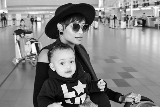 DJ Zinhle Jiyane pictured with her daughter, Kairo, in Durban, South Africa over the weekend. She broke up with her baby daddy AKA shortly after giving birth. AKA is currently dating media personality, Bonang Matheba.