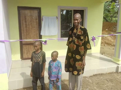 Mr. Ufot Jonny, a widower from Onna LGA, with two children, who was abused and abandoned by relatives, received a newly renovated bungalow with sets of furniture from Mrs. Martha Udom Emmanuel, wife of the Governor of Akwa Ibom State.